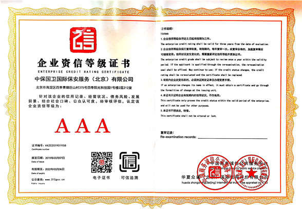 中保國衛(wèi)國際保安服務(wù)(北京)有限公司,屬中保國衛(wèi)集團(tuán)旗下子公司。能全方位的為大型客戶提供優(yōu)質(zhì)的安保、押運(yùn)服務(wù),是集人防和技防于一體的新型正規(guī)化綜合安保押運(yùn)服務(wù)企業(yè),提供人防、物防、技防、聯(lián)網(wǎng)報(bào)*、非武裝押運(yùn)等安防相關(guān)的一站式服務(wù)。